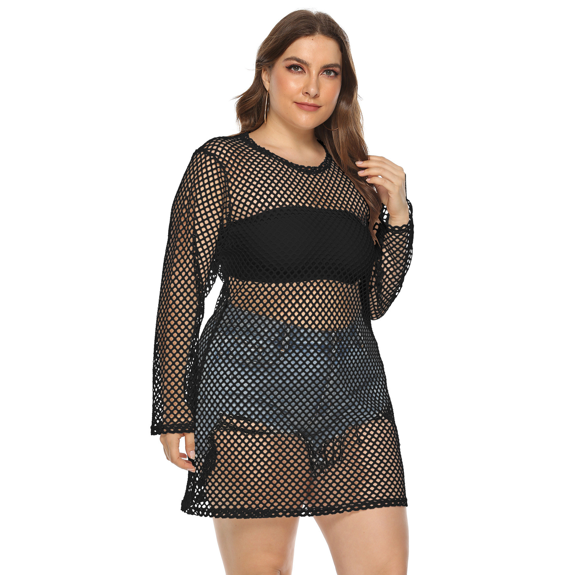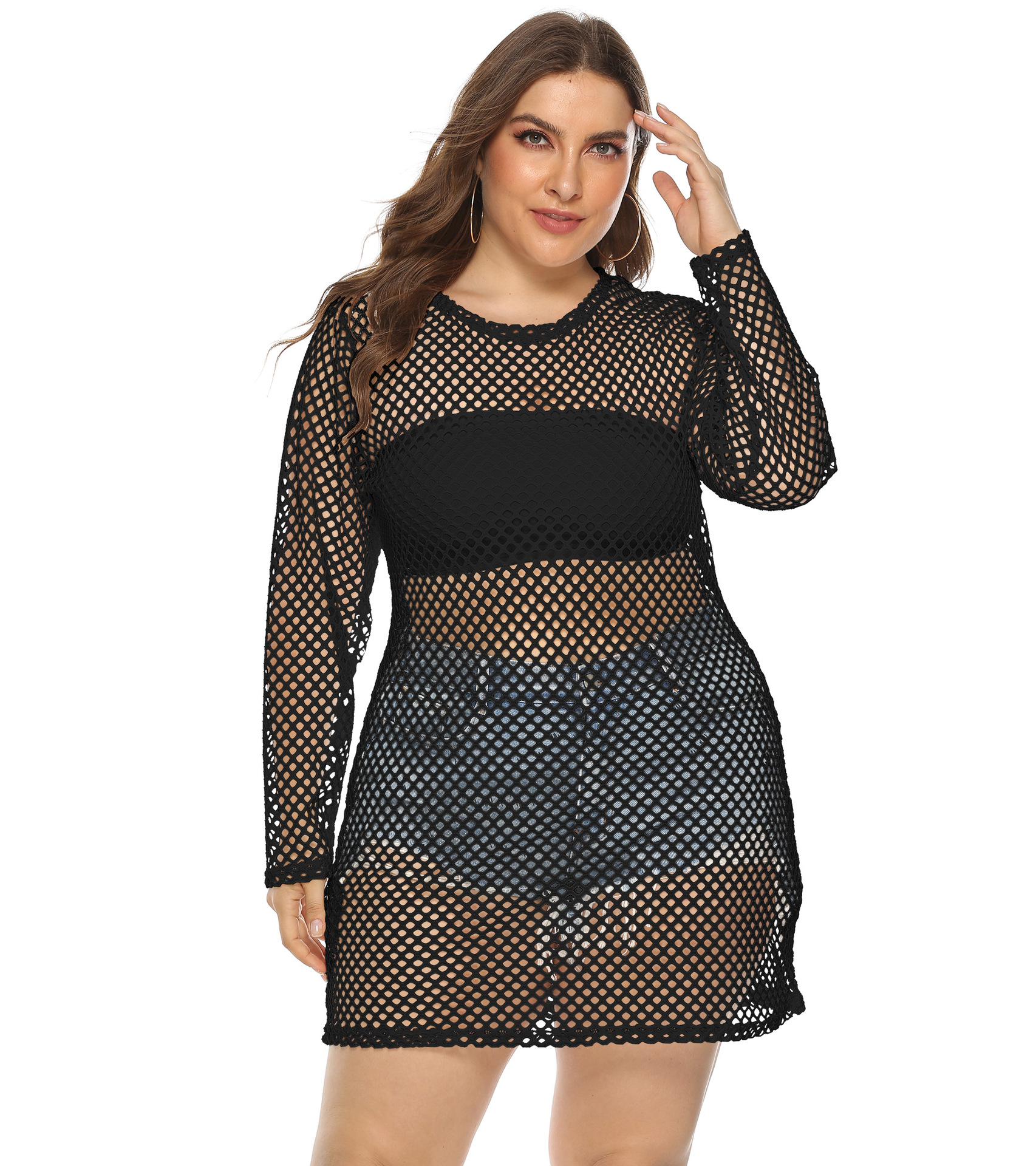 Features: Sheer, hollow-out design, knitted, midi length, regular sleeve, long sleeve